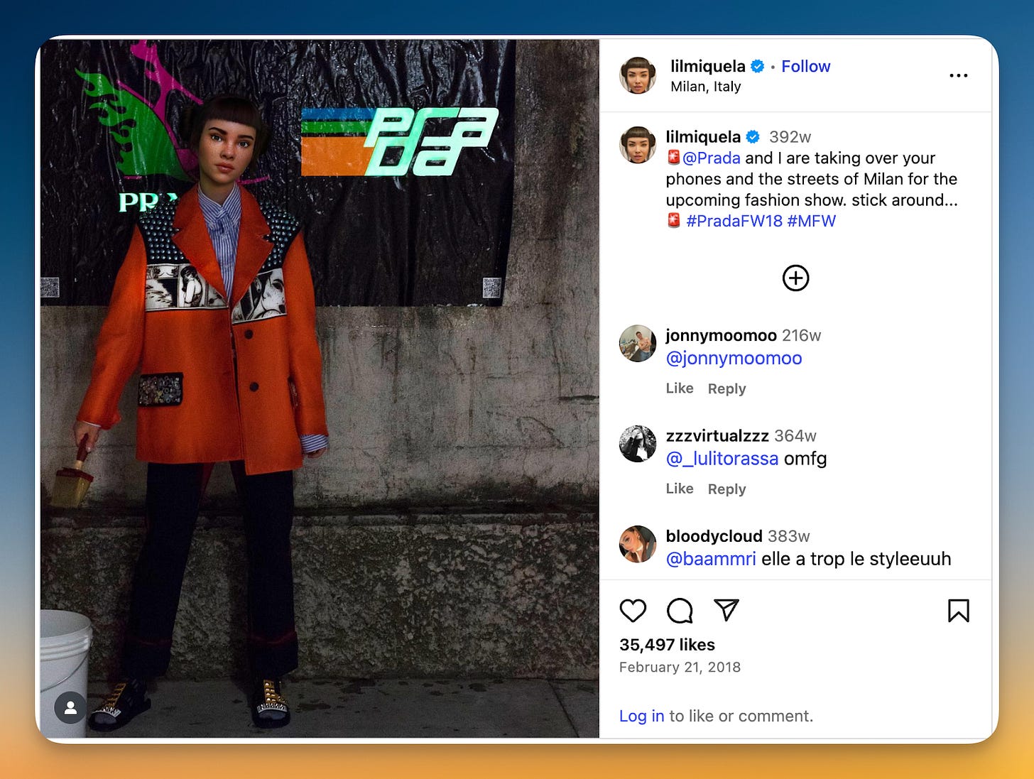 Lil Miquela: With 2.5 million followers on Instagram, Lil Miquela has collaborated with top-tier brands like Prada, Dior, and Pacsun. Her seamless integration into high-fashion campaigns proves the power of virtual influencers in luxury branding