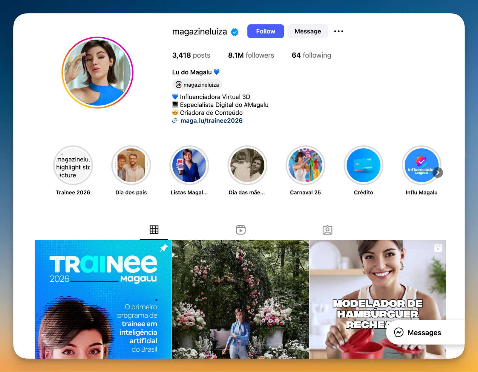 Lu do Magalu: Created by Brazilian retailer Magazine Luiza, Lu has become a national icon with 8 million followers on Instagram. She began as a virtual store assistant and has now evolved into a brand ambassador, engaging customers with personalized, always-on content