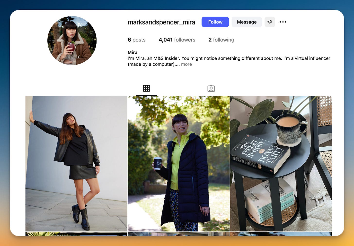 M&S and PrettyLittleThing: These retail giants have launched their own virtual models, Mira for M&S and digital models for PrettyLittleThing to appeal to younger shoppers and showcase their products in fresh, innovative ways