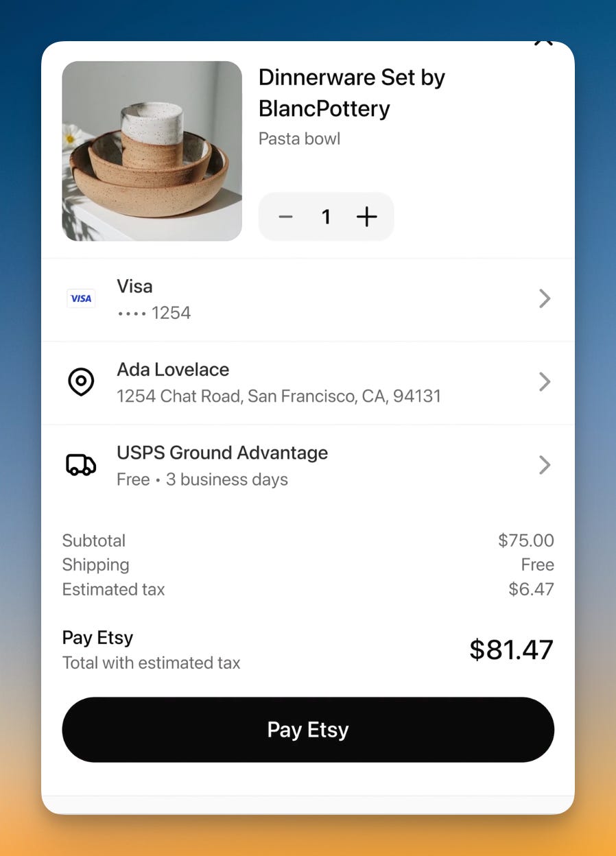 5) Rollout scope (two weeks in). Live for U.S. users with Etsy listings; Shopify support listed as “coming soon.” Single-item checkout now; multi-item carts planned. Payments run through established processors.